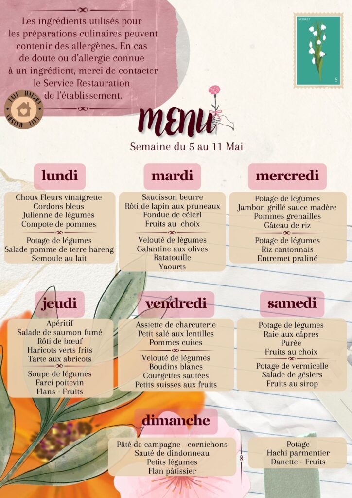 Vous trouverez les repas des résidents de la semaine, le planning des animation ainsi que le planning des animations de l’Unité Protégée.