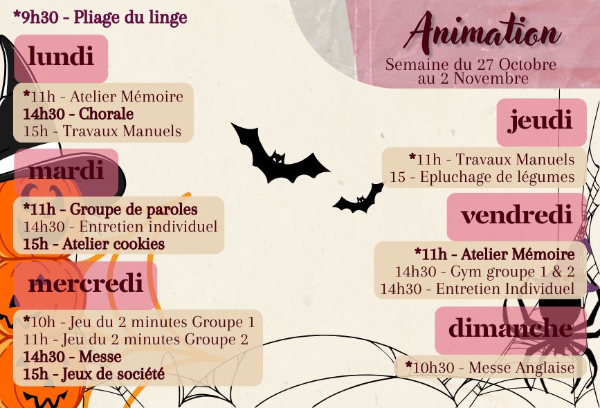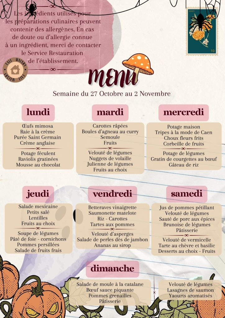 Vous trouverez les repas des résidents de la semaine, le planning des animations et le planning des animations de l’Unité Protégée.